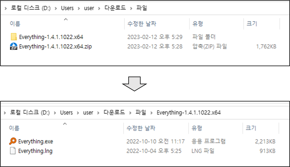 다운받은 파일을 압축을 풀면 두개의 파일 나옵니다. 프로그램을 바로 사용 할 수 있으서 저는 항상 휴대용 압축 파일을 사용합니다.