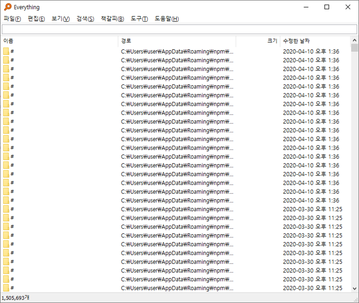 색인 스캔이 완료 되면 다음과 같이 폴더들이 보입니다.