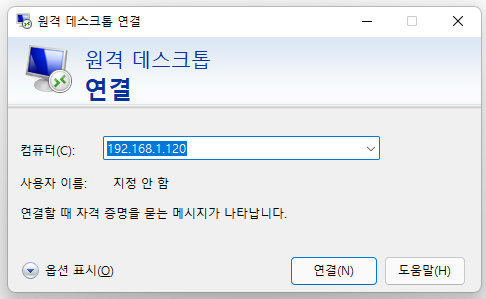 이제 원격데스크톱을 통해서 연결을 하면 됩니다.