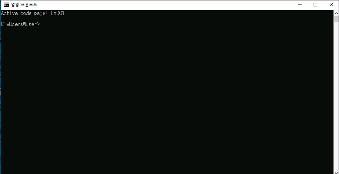 실행이 완료되면 Active code page: 65001 이 나왔는지 확인합니다.
