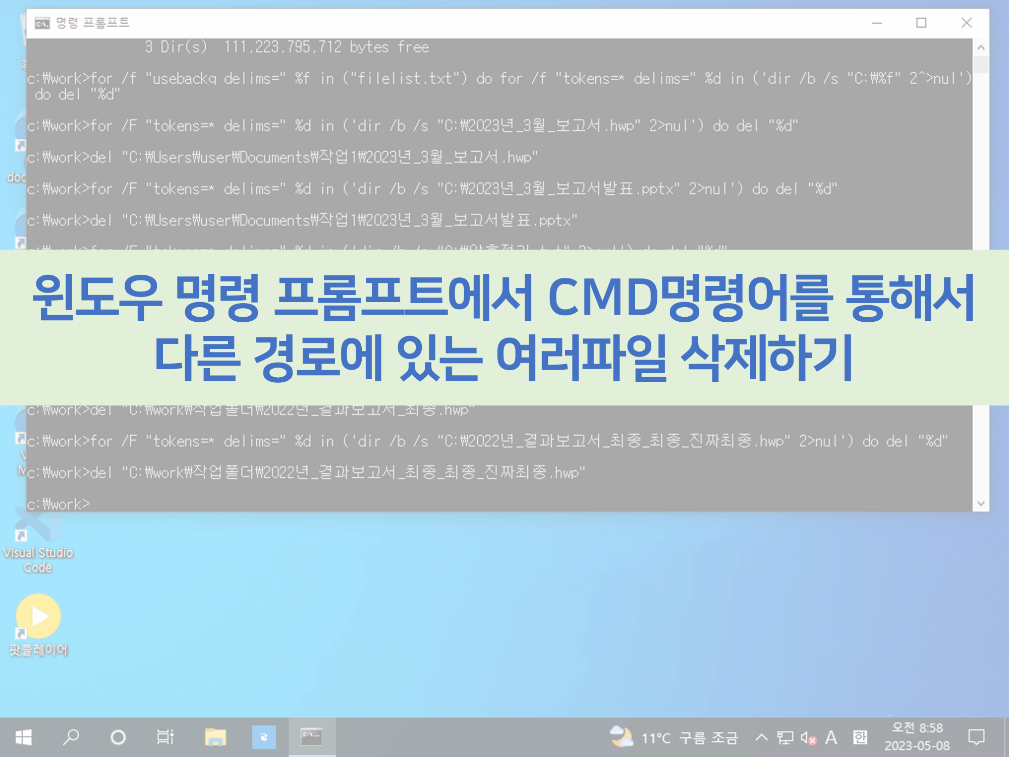 3. 명령프롬프트창에서 검색삭제 명령어 실행