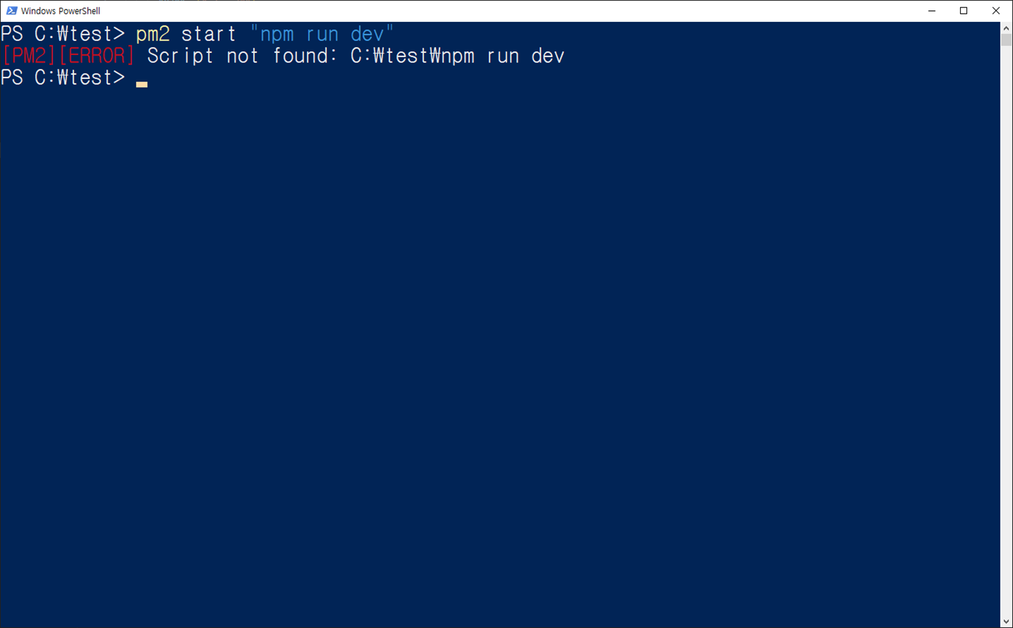 리눅스 환경에서 Nodejs 애플리케이션을 PM2를 이용하여 관리를 하고 있었는데 갑자기 윈도우 환경에서 Nodejs 를 이용해야 할 상황이 왔습니다. 기존 리눅스에서 pm2 start "npm run dev" 를 이용하여 관리를 했지만 윈도우에서는 해당 스크립트가 오류가 있어서 안된다고 나옵니다. 역시 다른 운영 체제 환경에서 실행은 방심하면 안됩니다.